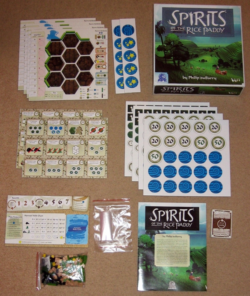 Componentes do jogo. Spirits of the Rice Paddy