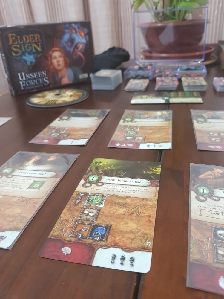 Partida de Elder sign com a expansão "Unseen Forces". Elder Sign: Unseen Forces