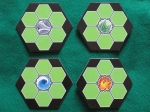 Visão frontal dos novos meeples. Foto por beatrix do BGG. Carcassonne Mini-expansão: The Phantom