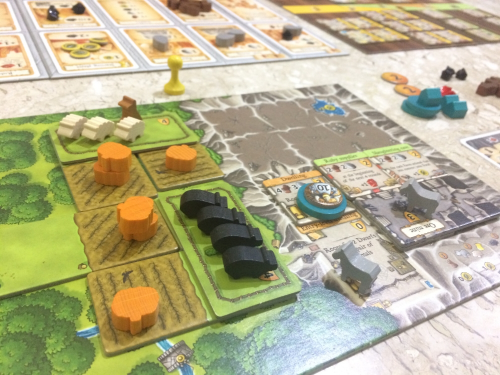 Close no meu tabuleiro. Neste dia resolvi variar e investir mais na fazenda. Caverna: The Cave Farmers