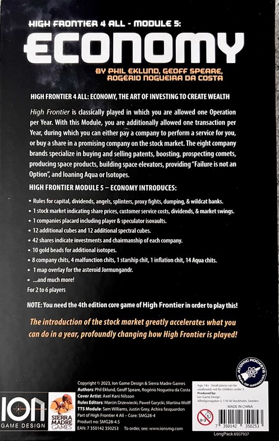Parte de trás da caixa High Frontier 4 All: Module 5 – Economy