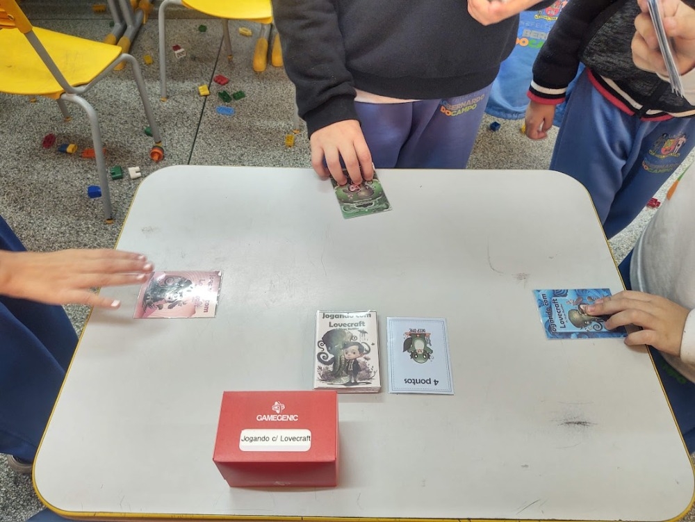 Alunos de 5-6 anos jogando o protótipo do jogo JOGANDO COM LOVECRAFT Jogando com Lovecraft