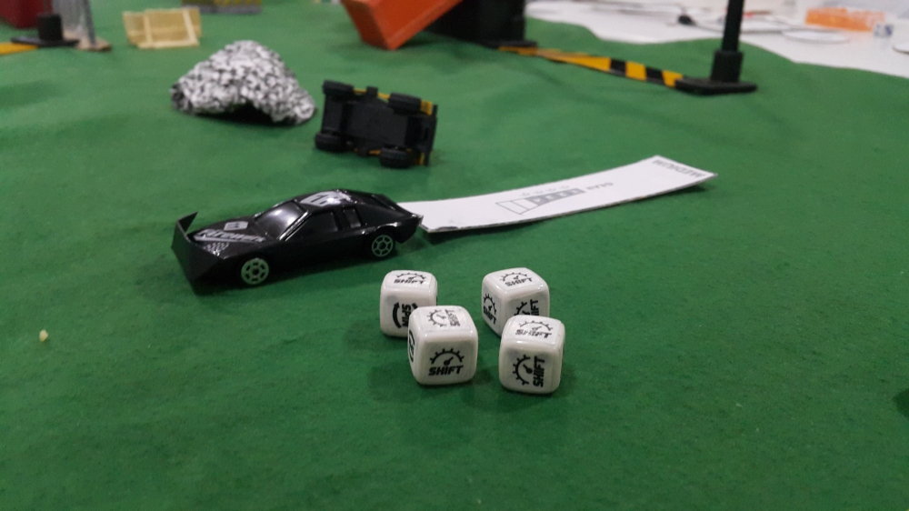 Pódio improvisado ao final de uma partida. Gaslands: Post-Apocalyptic Vehicular Combat
