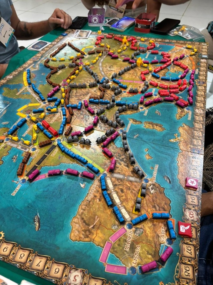 Jogo em andamento com 6 jogadores Ticket to Ride: Europe – 15th Anniversary