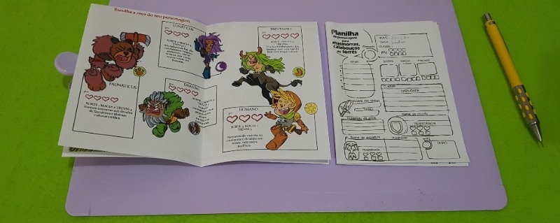 Personagem encomendado e masmorra ilustrada pelo designer. Manual de Sobrevivência para Masmorras, Calabouços ou Torres