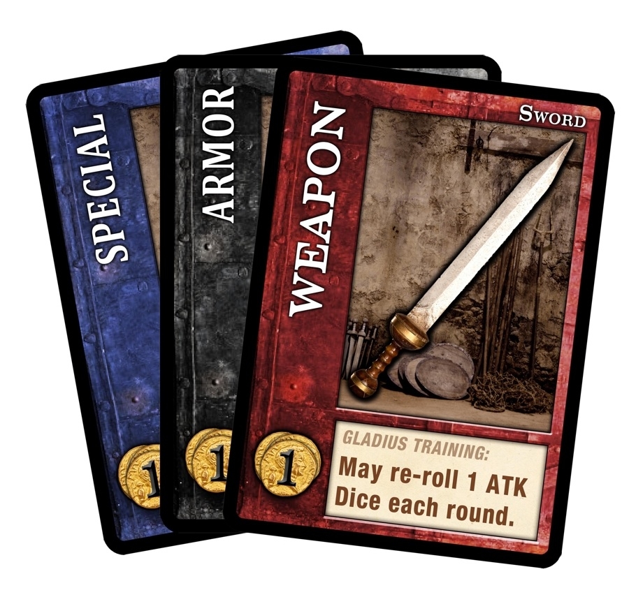 Cartas de equipamento. Spartacus: A Game of Blood and Treachery