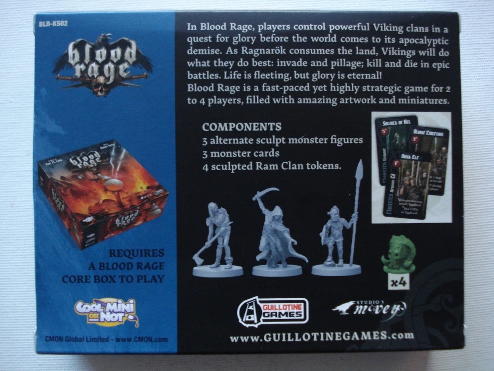 verso da caixa, descrição e componentes Blood Rage: 5th Player Extras – Kickstarter Exclusives