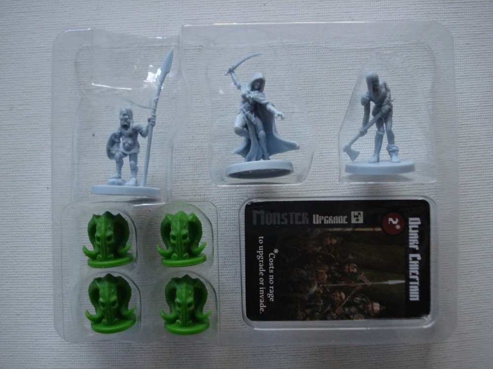 componentes: monstros, cartas e marcadores 3D. Blood Rage: 5th Player Extras – Kickstarter Exclusives