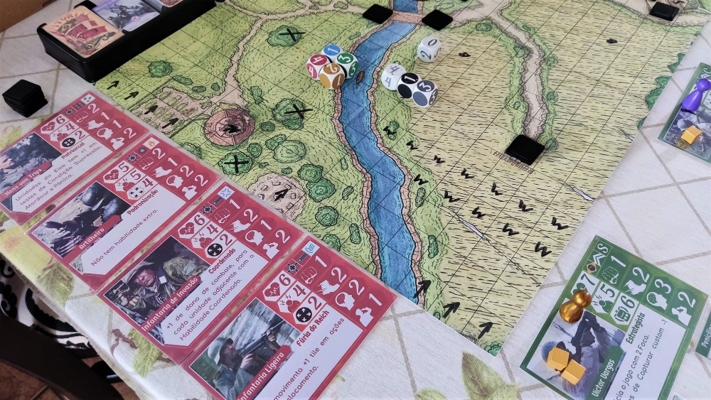 Tabuleiro auxilar + Cartas de Objetivos + Cartas de Suporte + Carta de Terreno Cobras Fumantes