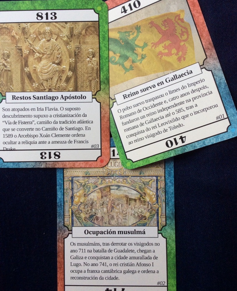 Algumas das cartas do jogo. O texto está em galego, uma das línguas oficiais da Espanha (semelhante ao português). Ophiusa: A terra dos mil ríos