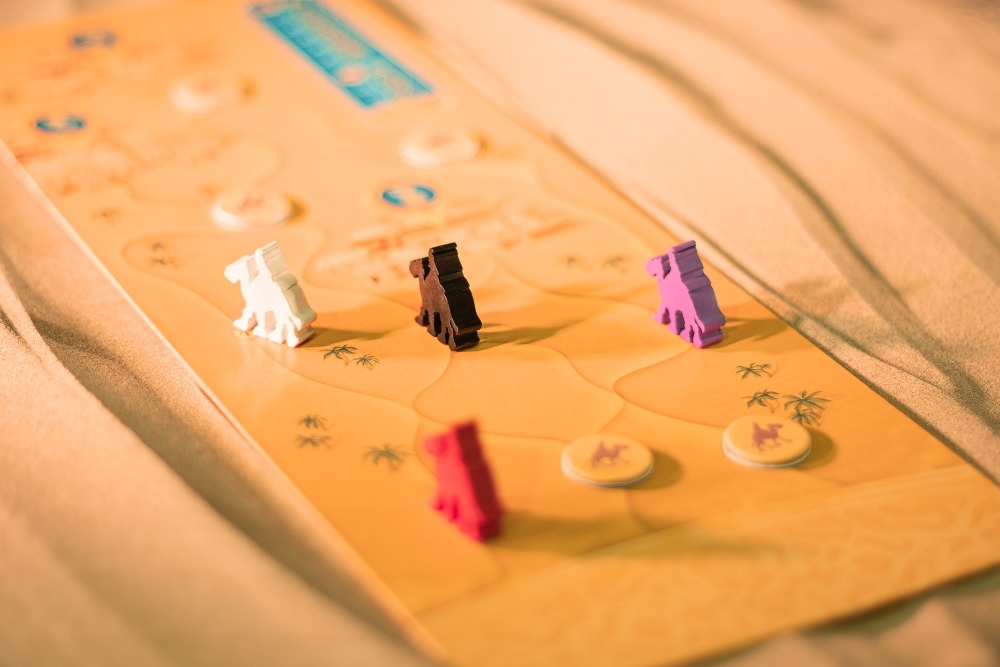 Detalhe da Trilha com os Meeples de Camelo Os Desejos do Sultão: Expansão Viajantes