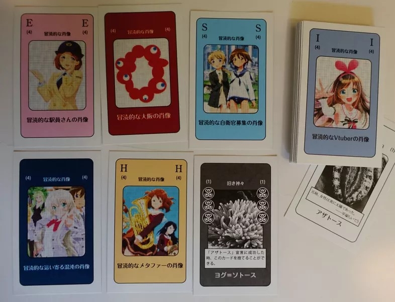 As cartas principais são de anime, com letras do alfabeto, de modo que um jogador pede ao outro um A ou um B e assim por diante. Fazer conjuntos permite ao jogador descartá-los.
