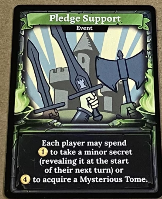Cada jogador pode gastar 1 ouro para pegar um segredo menor (revelando-o no início de seu próximo turno)
