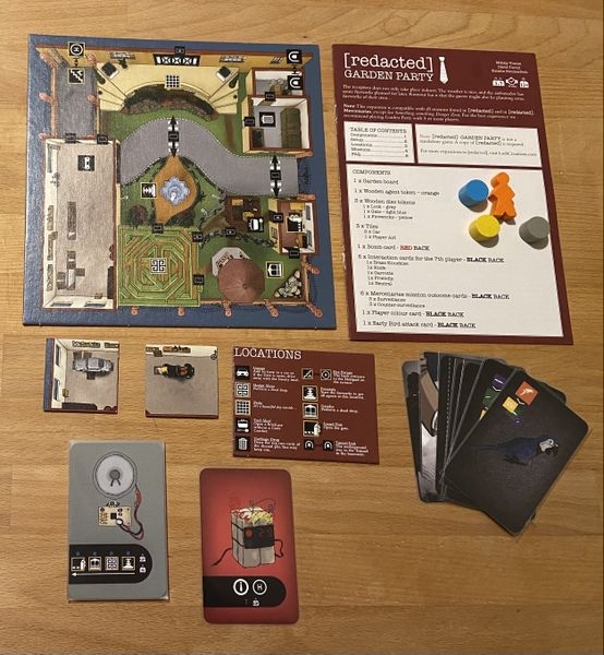 A expansão Garden Party acrescenta vários novos elementos emocionantes para [redacted]. Há um quarto tabuleiro com novos quartos, incluindo uma segunda saída que não seja helicópteros. Ele permite um sétimo jogador. Há cinco novos cenários para 5, 6 e 7 jogadores, incluindo regras para 2v2v2. Finalmente, inclui uma sexta missão quando usada com a expansão Mercenaries.