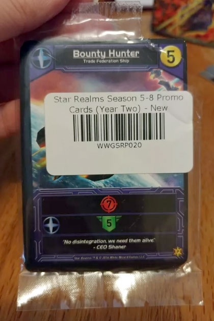 Assim como os cartões promocionais do ano um de Star Realms (temporada 1-4), esses cartões foram lançados ao público através de eventos em convenções e lojas de jogos (em 2016 e 2017).