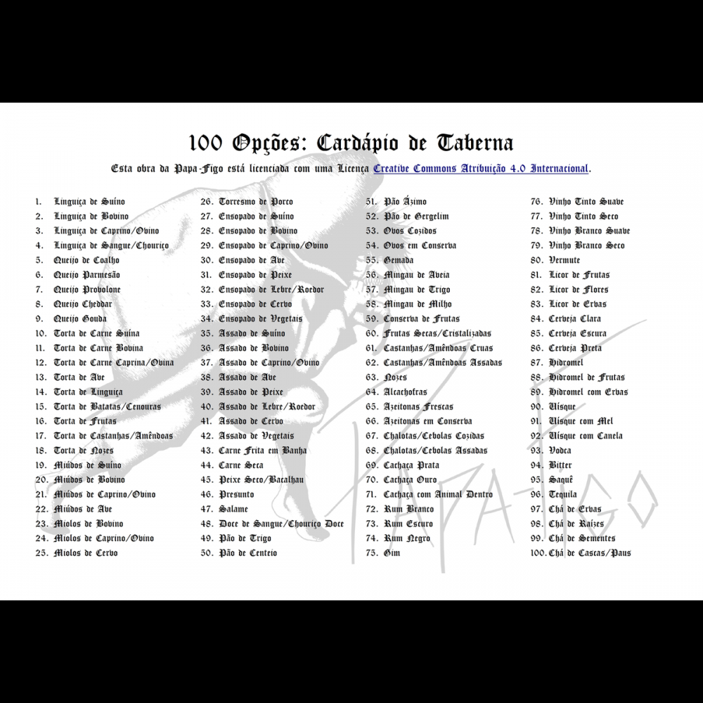1. 100 Opções: Cardápio de Taberna