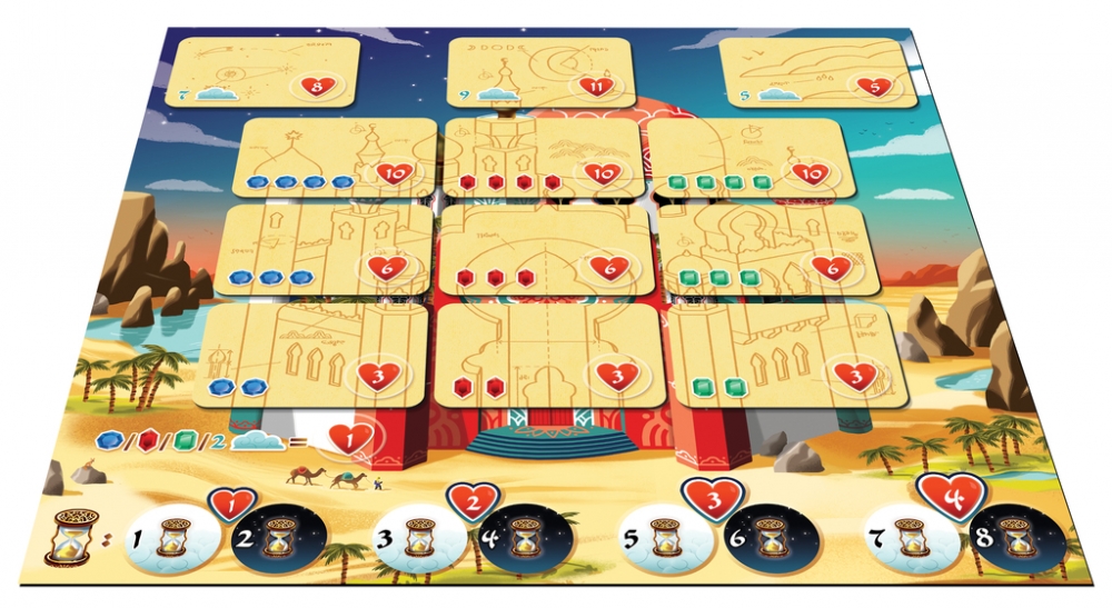 - Como uma equipe: Você tenta escolher os melhores caminhos para Aladdin para que ele recolha os recursos que ele precisa para construir um palácio para a princesa e capturar a lua e as estrelas para ela.