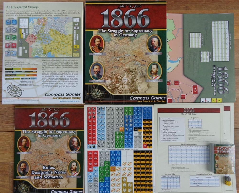 1866 é uma simulação para dois jogadores que trata da Guerra Austro-Prussiana de 1866 na Europa Central. Um jogador controla as forças da Prússia e seus aliados, incluindo o jovem Reino da Itália e o outro jogador controla as forças da Áustria e seus aliados da Confederação Alemã. Usando um baralho compartilhado de 55 Cartas de Operações, cada jogador toma decisões relativas ao desdobramento, combate e operações político-militares em apoio de suas forças e sua estratégia geral. Ordens de batalha incluem todos os corpos / divisões históricos (com alguns contadores de brigada) e todos os principais generais envolvidos no conflito. O quadro cobre uma área de Hamburgo a Florença e Metz a Cracóvia. O sistema inclui regras de mobilização únicas que refletem as dificuldades de se mobilizar para a guerra, enquanto tentam reunir tantos pontos de vitória antes que a guerra seja declarada. Uma vez que a guerra é declarada, você deve lutar com as forças mobilizadas, de modo que um julgamento sagaz é necessário sobre o que mobilizar, onde essas forças irão operar e quem as comandará. Sempre esperando nos bastidores está o 2º Império Francês sob Napoleão III, preparado para intervir se nenhum dos lados parecer capaz de obter uma vitória rápida e decisiva. Outras características incluem superioridade de cavalaria, ferrovias, vantagem de mobilização da Prússia e ataques coordenados. 1866 inclui dois cenários, o cenário Mobilização para Guerra (o cenário da Campanha) e o cenário Guerra das Sete Semanas (abrangendo a situação pós-mobilização). As cartas são subdivididas em baralhos de Mobilização e Guerra, que são combinadas após declarar a guerra.