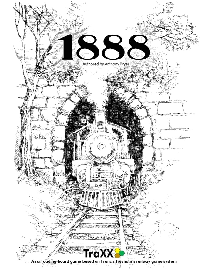 1888 é um jogo 18xx . Os jogadores operam suas ferrovias em Jefferson e New Suffolk, dois estados fictícios dos Estados Unidos. “Cartas de Evento” são uma boa maneira de adicionar um sabor histórico a um jogo, mas um baralho de eventos aleatórios sendo virados a cada rodada não é o que buscamos. O deck do trem está repleto de cartas de eventos que têm como objetivo motivar os jogadores a mudar seus hábitos de compra de trens. “McGuffins” adicionais incluem cartas de trem de dois lados com um trem mais poderoso no reverso e, de forma não convencional, negociação prioritária estabelecida no início de cada rodada de ações.