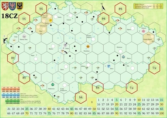 18CZ é um jogo familiar 18xx que está estabelecido na República Tcheca. No jogo, os jogadores procuram ganhar mais dinheiro comprando e vendendo certificados de ações de até quinze empresas ferroviárias. O jogador com o maior estoque de uma determinada empresa em sua posse atua como o presidente desta empresa e é responsável pela localização dos trilhos, a colocação de cabeças ferroviárias (o que é necessário para corridas de trens), a seleção de rotas e a aquisição de trens. A venda de trens ganha dinheiro e esse dinheiro é dividido pelos acionistas ou mantido no tesouro da empresa para investimentos adicionais (como comprar trens melhores ou construir trilhos). Esta decisão influencia o valor das ações da empresa - e não o jogador com maior estoque ou o trilho mais bonito construído ganha o jogo, mas o jogador com maior riqueza em termos de caixa e ações.
