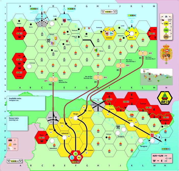 Além disso, como características especiais 18España tem muitas minas, dois mapas que diferenciam as zonas onde foram construídos trilhos de bitola estreita e larga, passagens de montanha que ligam estes dois mapas, grandes e pequenas empresas, aquisições, diferentes tipos de trens, etc. Embora