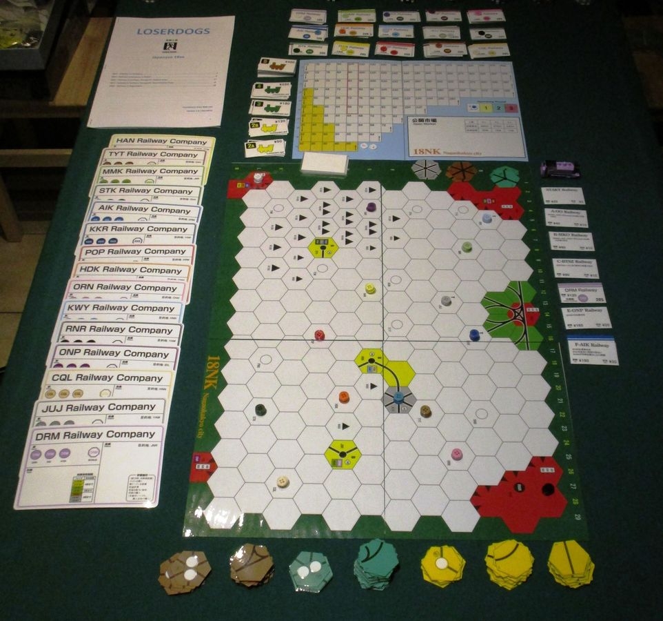 18NK é um jogo 18xx japonês que se passa em Nagaokakyo. Embora as regras ainda não tenham sido traduzidas, elas parecem não ser diferentes do resto de sua família - uma combinação de manipulação de ações, construção de rotas e gerenciamento de capital.
