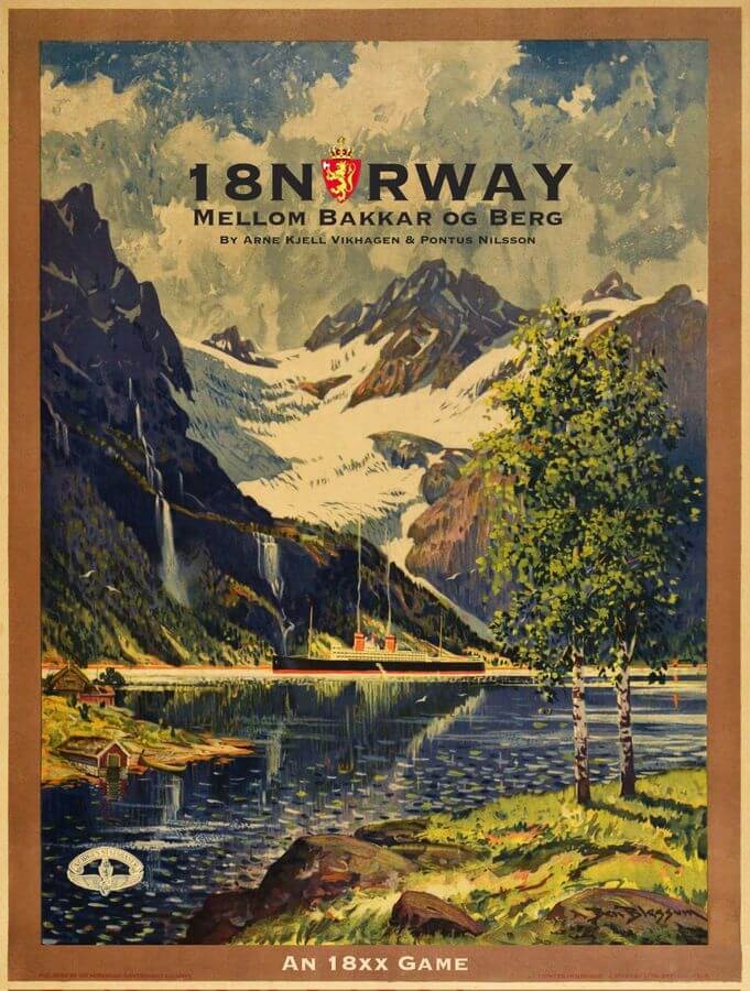 18Norway é um jogo 18XX baseado em 1829 de Francis Tresham, e segue o desenvolvimento da ferrovia norueguesa de 1854 em diante. Você estará lidando com clima severo e terreno difícil enquanto constrói sua ferrovia através de colinas e montanhas e ao redor dos fiordes ao longo da linha costeira irregular do Mar do Norte. Enquanto isso, as empresas têm que levar em conta a nacionalização inevitável.