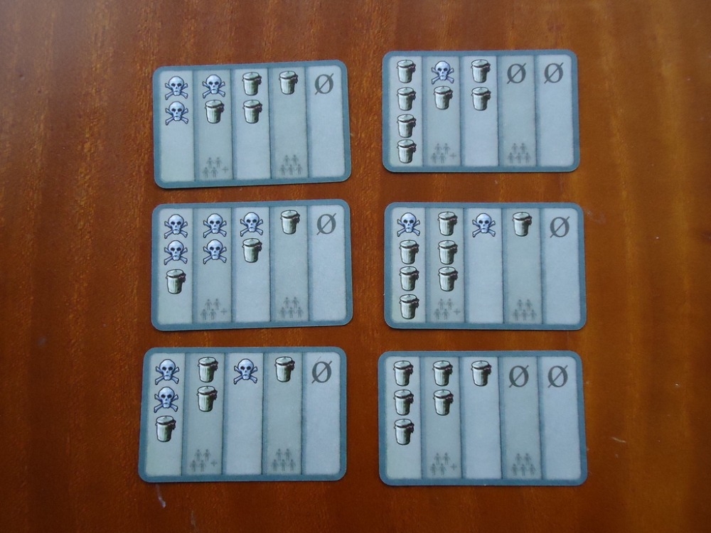 • 09 cartas de catástrofe: 3 para as rondas um ou dois, 3 para as rondas três ou quatro e 3 para a ronda cinco