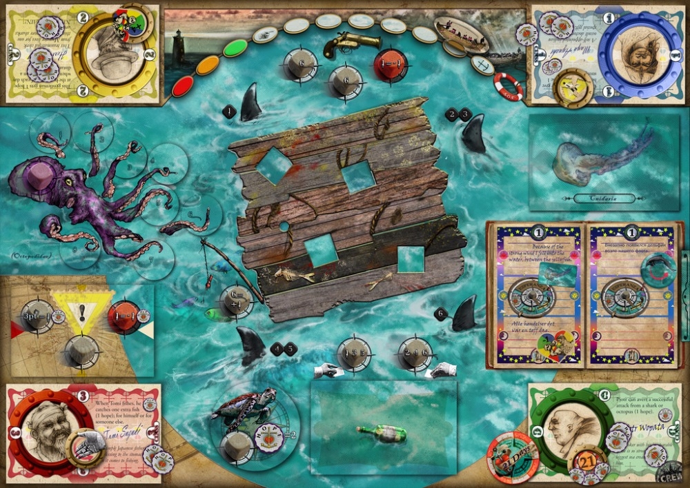 Não perca muitas tábuas da jangada ou então você vai perder alguns dos seus sobreviventes também! Em 21 Days, os quatro sobreviventes estão presos em uma jangada feita de seis tábuas que são mantidas frouxamente juntas. Alguns eventos durante os 21 dias podem fazer com que algumas tábuas se soltem. Há maneiras de evitar isso, como salvar tokens de esperança ou escolher as cartas de garrafa certas. Quando o navio de resgate entrar no ponto final no campo de resgate e ainda há sobreviventes na balsa, você será salvo e ganhará o jogo.