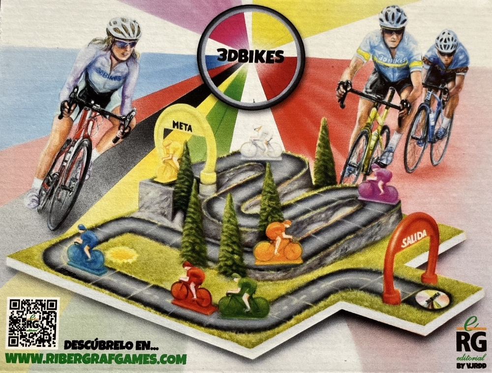 3dbikes é um jogo de corrida de bicicleta do tipo rolar e mover, com 8 peças de piso que você pode usar para criar qualquer corrida que quiser, miniaturas e cenários impressos em 3D, cartas de ação e diferentes funções para cada jogador.