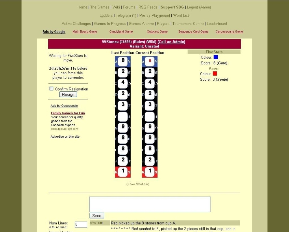 O jogo termina quando a semeadura simultânea não é mais possível. Empates não são possíveis.
