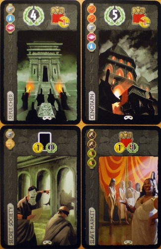 As novas cartas pretas (9 para cada era) tem uma variedade de efeitos, dentre os quais destacam-se as cartas de diplomacia, que eliminam conflitos militares, e as cartas que fazem adquirir dívidas (ou perder ouro), representadas pelos novos marcadores de Dívidas (-1 e -5).