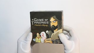 Hand of the King é um jogo de cartas acelerado de conspirações e reviravoltas repentinas do destino para dois a quatro jogadores. Este jogo desafia cada um de vocês para obter o máximo de apoio entre as intrigas torcidas da corte do Rei. Cada turno, você envia Varys para fazer o seu lance, movendo-se através do tribunal e incitando personagens icônicas das Crônicas de Gelo e Fogo para apoiar sua causa. Com a ajuda de alguns companheiros e alianças espertas com outros jogadores, você só pode se tornar a nova a mão do rei!