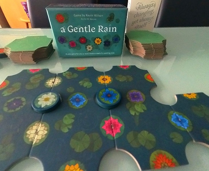 Você veio ao lago na esperança de ver uma cena rara e bela. Os lírios do lago apenas abrem suas flores na chuva, e apenas raramente todos os oito tipos de lírios florescem ao mesmo tempo. O objetivo de A Gentle Rain é colocar as peças de lago de forma a fazer com que todos os oito tipos de lírios floresçam antes que as peças acabem e a chuva acabe.