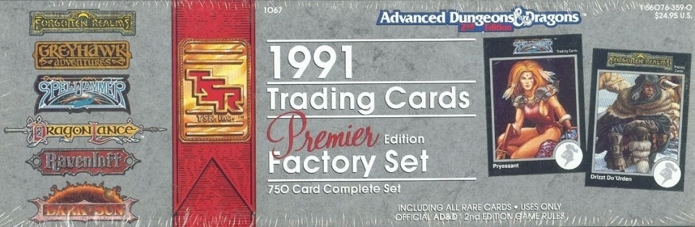 O conjunto de cartões colecionáveis ​​AD&D de 1991 contém 750 cartões numerados. Cada carta tem a imagem de um personagem, item mágico ou monstro de um mundo de D&D e as estatísticas de AD&D correspondentes no verso.