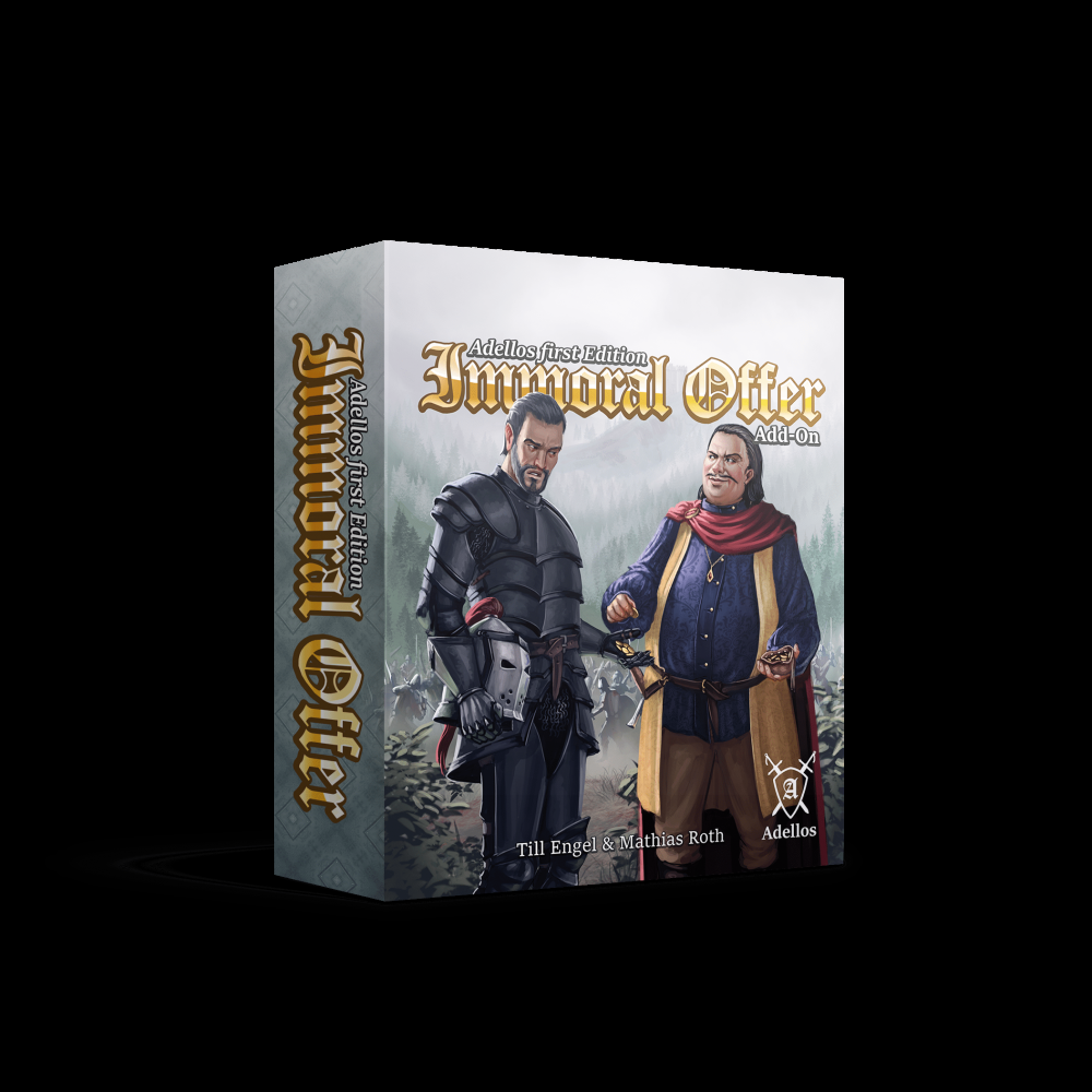 Immoral Offer é a primeira expansão para Adellos e vem com o seguinte conteúdo: