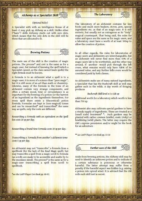 [Este produto] fornece regras opcionais para apresentar a Alquimia como uma Habilidade Especializada.