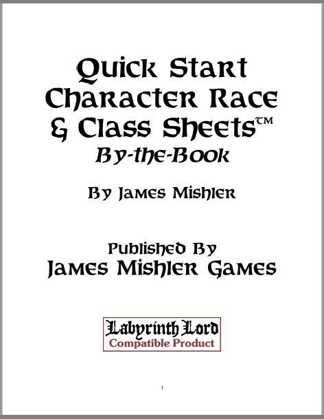 2. Advanced Labyrinth Lord - Quick Start Character Race & Class Sheets: By-the-Book