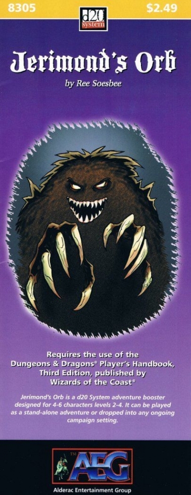 Orb de Jerimond é um booster de aventura do sistema d20 projetado para 4-6 personagens níveis 2-4. Ele pode ser jogado como uma aventura independente ou colocado em qualquer cenário de campanha em andamento.
