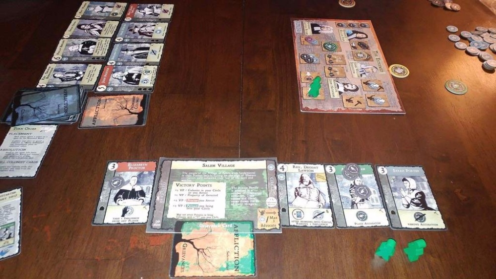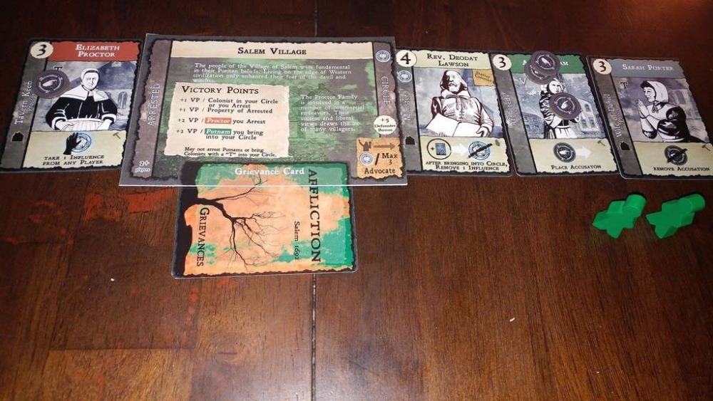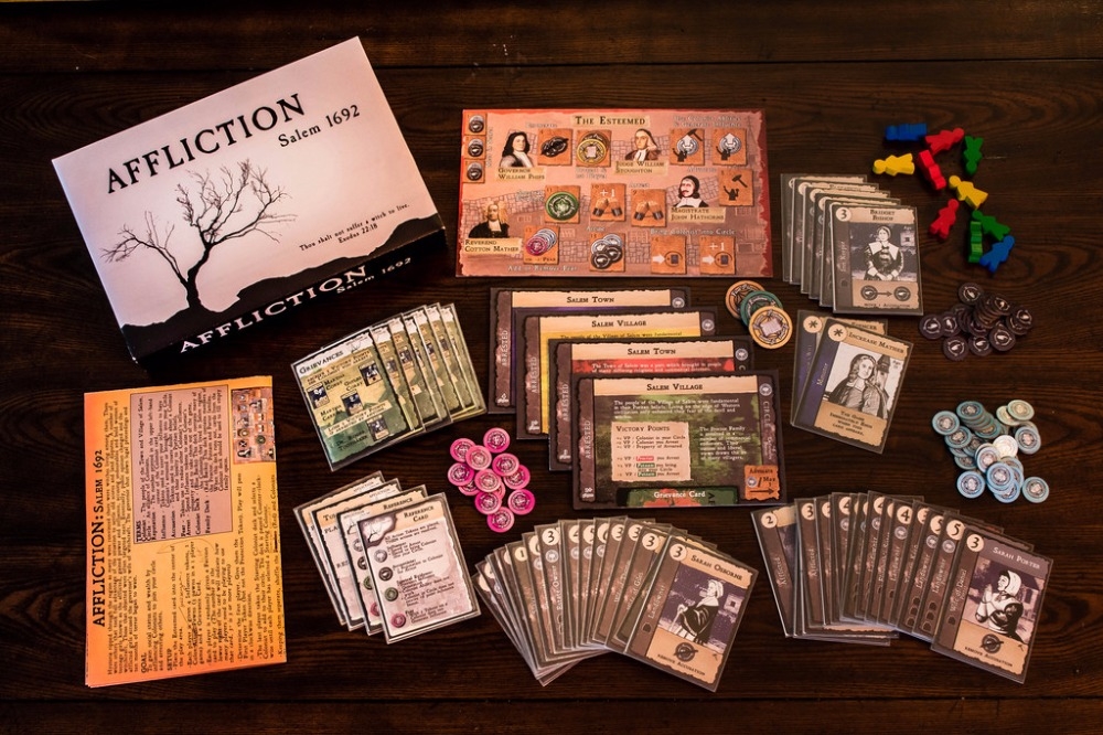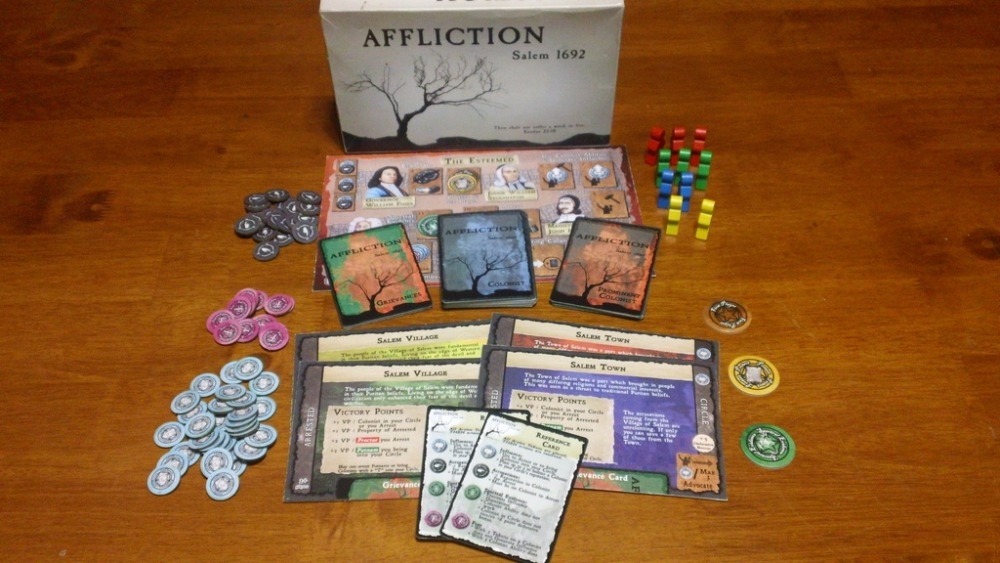 AFFLICTION: Salem 1692 é um jogo definido na histeria de uma caça às bruxas. Use sua influência para sussurrar no ouvido do magistrado, juiz, governador ou ministro para proteger alguns e ter outros presos. Salem foi uma chance de ganhar propriedade, exata vingança e provar a justiça.