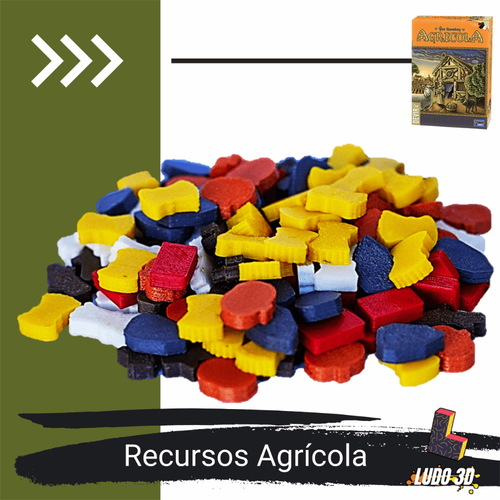 Componentes realísticos para o jogo Agrícola. Substitua os recursos do jogo base pelos recursos em 3D.
