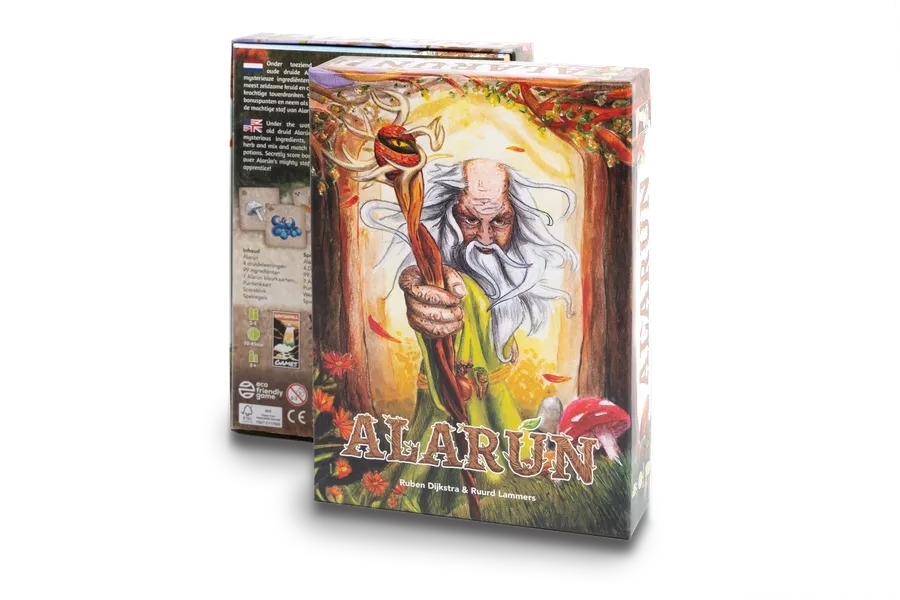 O jogo de Alarún é disputado em 8 rodadas, cada uma da mesma forma. Nessas 8 rodadas você coloca 24 ingredientes que formam seu quadrado mágico de cartas 5x5. Seu aprendiz de druida completa seu quadrado mágico.