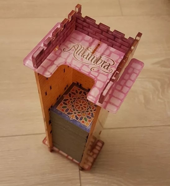 Fazia parte de um dos pacotes do Kickstarter do Alhambra Big Box 2ª Edição, mas a torre de azulejos em acrílico também pode ser adquirida separadamente no site da Queen Games.