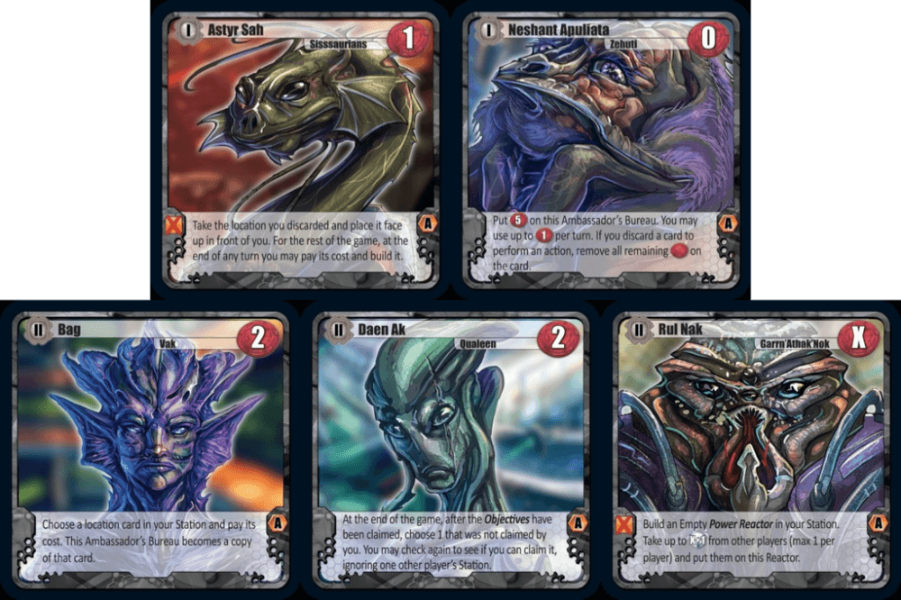 Estes embaixadores são introduzidos no jogo com a adição de uma quarta ação que permite aos jogadores convidá-los para a sua estação e torná-los parte de seu Conselho. Cada embaixador vem com uma habilidade diferente, com base nos pontos fortes e as capacidades da sua raça. No entanto, há um espaço limitado no Conselho de cada jogador para que eles tenham que escolher sabiamente quem irão convidar.