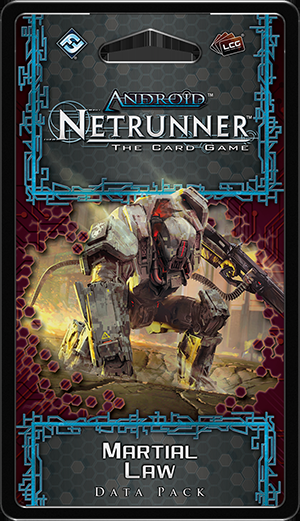 Martial Law é o quinto e penúltimo Data Pack do ciclo Flashpoint para o jogo Android: Netrunner, e ele avança nossa compreensão do quão fundo New Angeles mergulhou no caos. Seus cidadãos estão presos em suas Arcologias ou amontoados em qualquer local seguro que podem encontrar. As ruas da cidade se tornaram um zona de guerra. As corporações não conseguem restaurar a ordem.