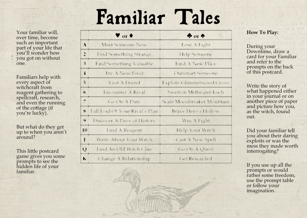 Um microjogo jogado no tempo de inatividade do Apothecaria que apresenta os Familiares ao jogo.