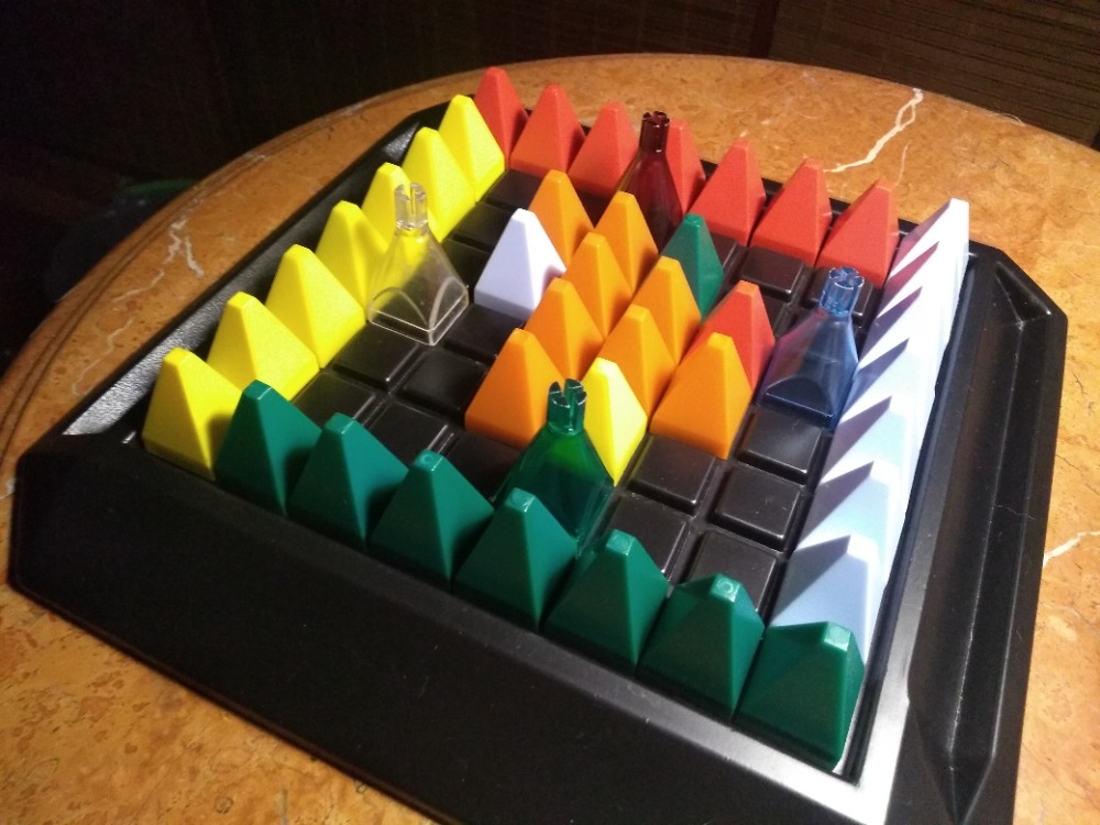 O jogo é jogado em um tabuleiro 8x8, com cada jogador controlando um peão Rei. Na sua vez, você deve mover seu Rei (como um rei de xadrez normal) e depois colocar uma pirâmide no tabuleiro. Uma vez que seu Rei se tornou completamente rodeado de pirâmides e não pode se mover, você está fora do jogo, a menos que haja duas pirâmides da mesma cor (existem oito pirâmides em cinco cores diferentes) em uma linha reta ao lado do seu Rei; neste caso, você pode mover o seu Rei para outro lugar no tabuleiro e, em seguida, mover seu Rei para o espaço vazio.