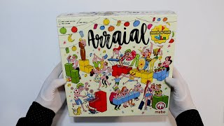 No jogo Arraial, os jogadores tentam tornar o evento tradicional de seu bairro o mais popular, atraindo visitantes para sua comemoração. Pegue as mais belas decorações, contrate os artistas mais inspirados, sirva as iguarias mais tradicionais, vá para as ruas e sinta a festa do ano! Arraial é um jogo de ritmo acelerado no qual os jogadores se revezam gastando pontos de ação para conseguir as melhores peças (decorações, artistas ...) e colocá-los em seus tabuleiros para formar a combinação perfeita e atrair visitantes para sua festa. No final, ganha quem atrair mais visitantes para seu bairro.