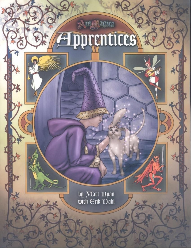 "Este livro contém conselhos e regras para brincar de aprendizes e outras crianças na Ars Magica. Ele cobre mudanças na geração de personagens e diretrizes para o desenvolvimento conforme a criança cresce. Regras para ensinar virtudes herméticas também estão incluídas, bem como uma ampla gama de feitiços adequado às habilidades de um aprendiz. Veja a Europa Mítica de novo através dos olhos dos Aprendizes! "