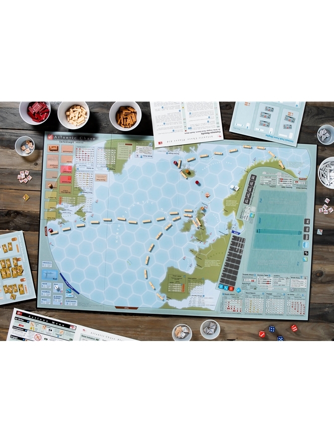 O Atlantic Chase simula as campanhas navais travadas no Atlântico Norte entre as frotas superficiais da Marinha Real e do Kriegsmarine entre 1939 e 1942. Utiliza um sistema de trajetórias para modelar o nevoeiro de guerra que atormentou os comandos durante esse período. Assim como os pinos e cordões que adornam a parede de Churchill representam o curso dos navios em andamento, os jogadores organizam linhas de trajetória no tabuleiro de jogo compartilhado, cada linha representando o caminho de uma força-tarefa. Sem recorrer a blocos falsos, movimento oculto ou um sistema duplo-cego que requer um árbitro ou computador, os jogadores experimentam a incerteza endêmica a este período de guerra.